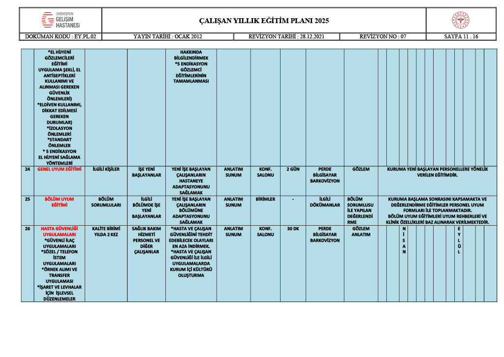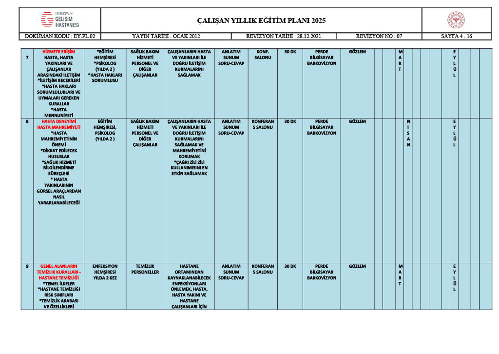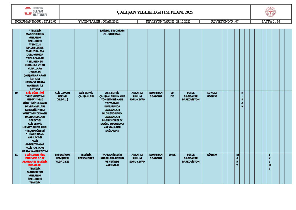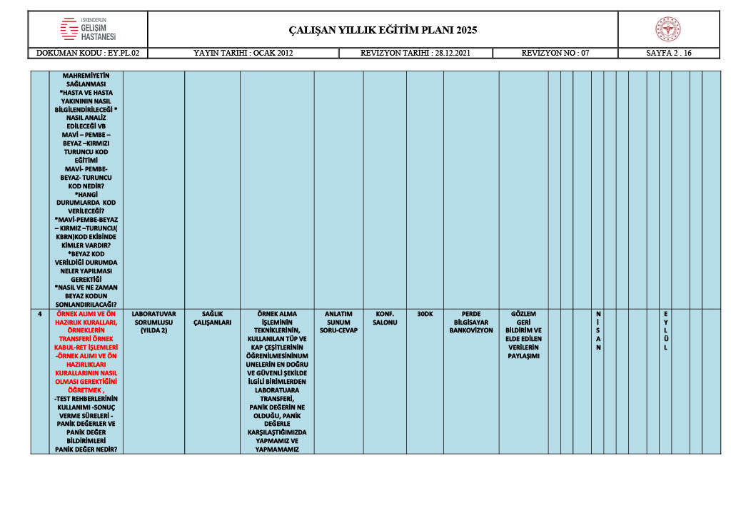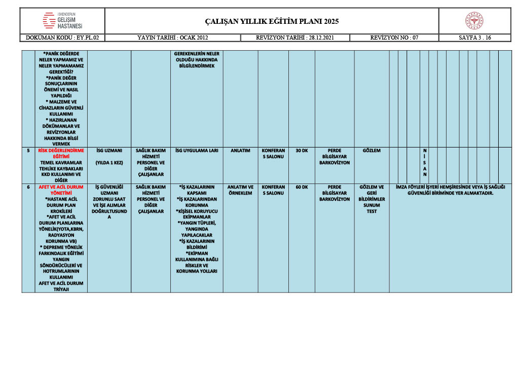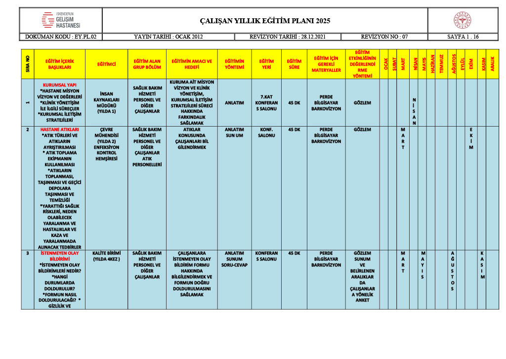 ÇALIŞAN YILLIK EĞİTİM PLANI