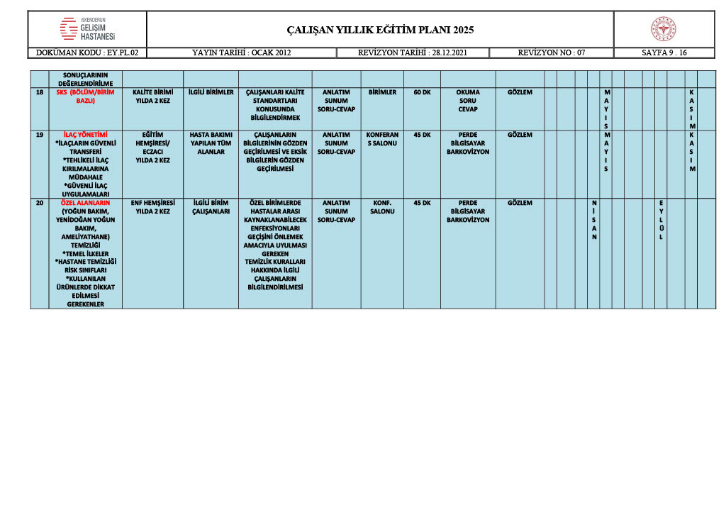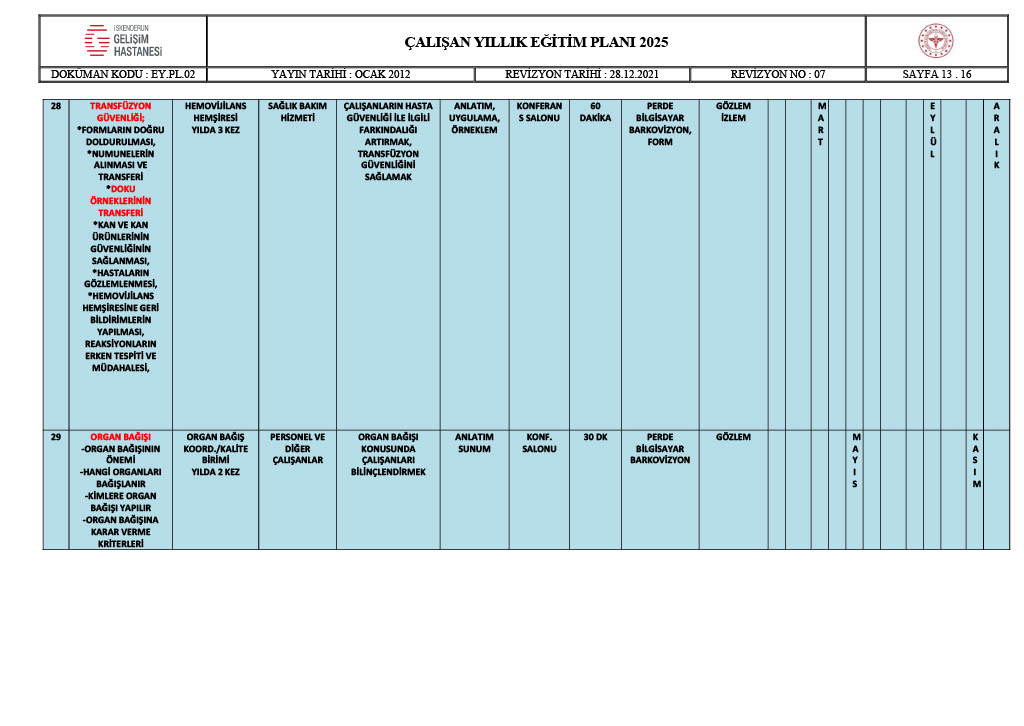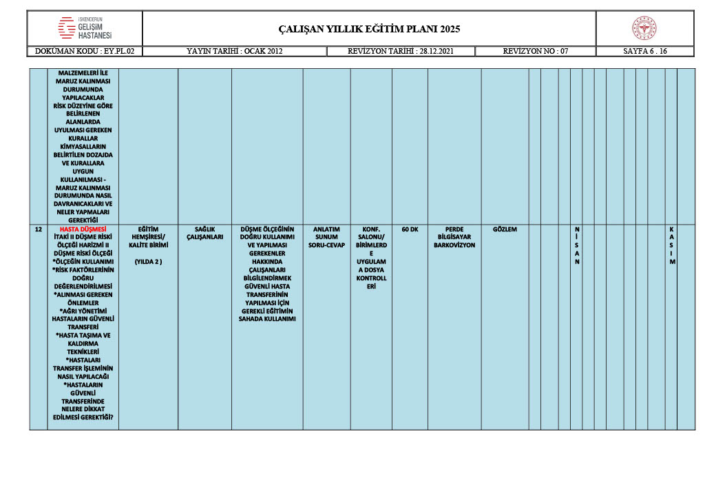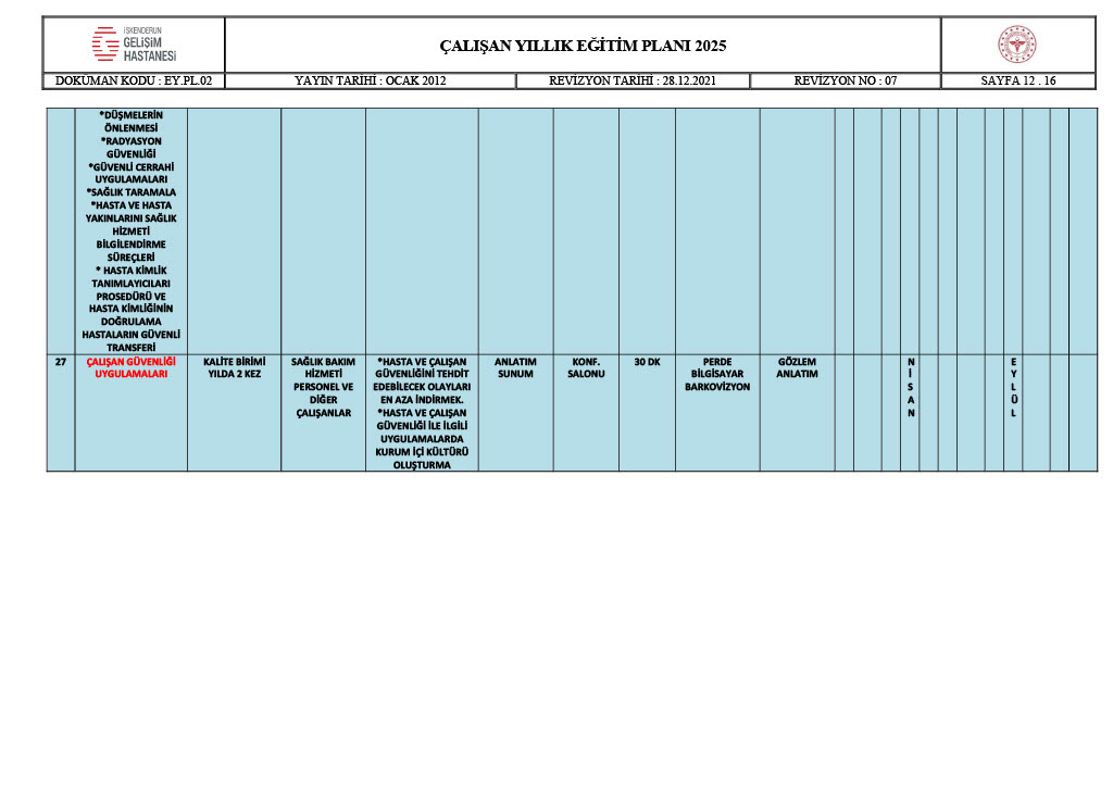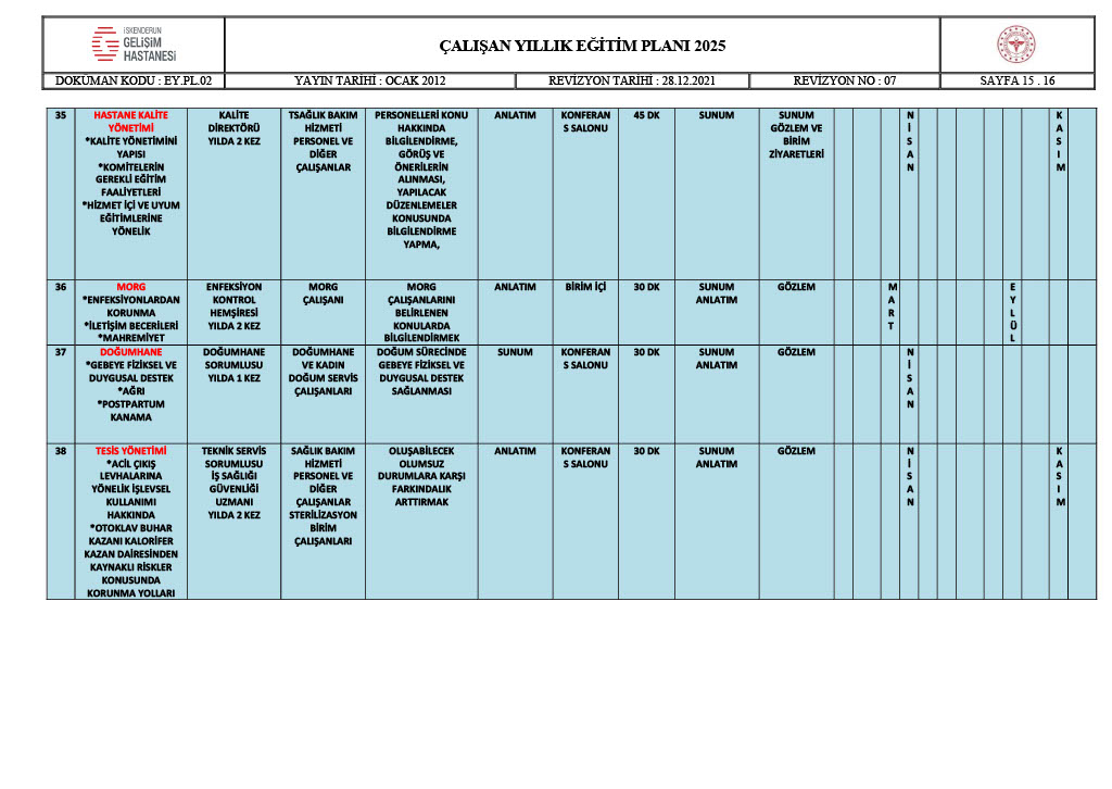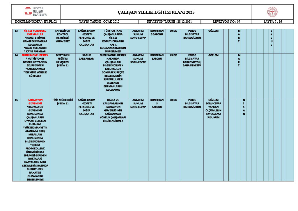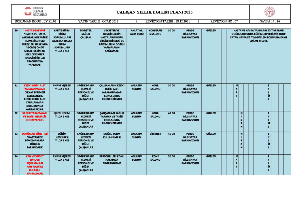 ÇALIŞAN YILLIK EĞİTİM PLANI